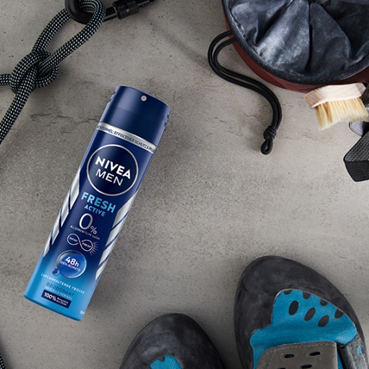 Deodorantul Spray NIVEA MEN Fresh Active cu formula INFINIFRESH si 0% aluminiu ofera prospetime pentru 48h si lupta activ impotriva bacteriilor ce cauzeaza mirosuri neplacute. Produsul este testat dermatologic pentru o utilizare fara griji.